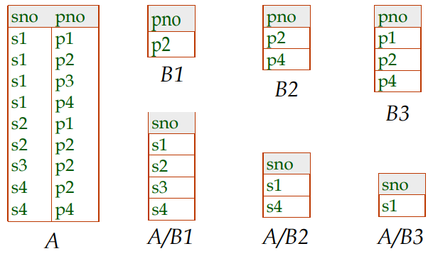 What would the statement A / B means where A have 2 fields, x and y; B has only the field y.