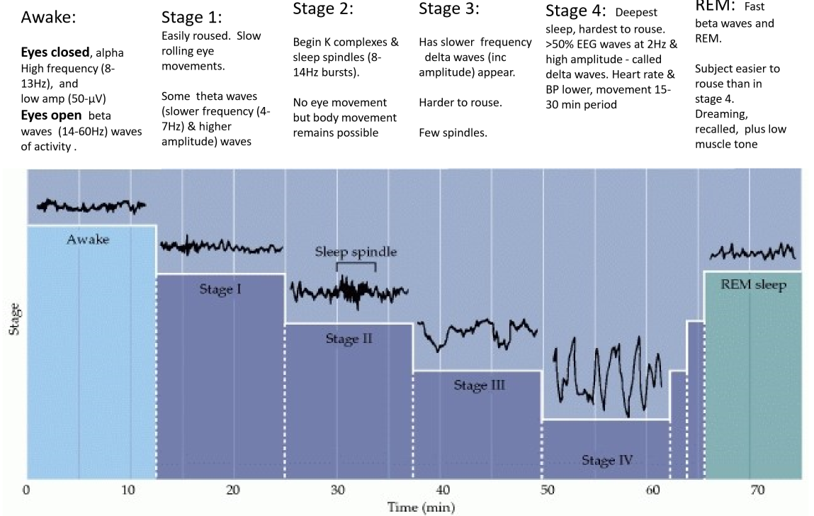 Hyperpolarisation of the thalamus (less excited) which will lead to rhythmic output of the thalamus, therefore slow EEG waves in cerebral cortex