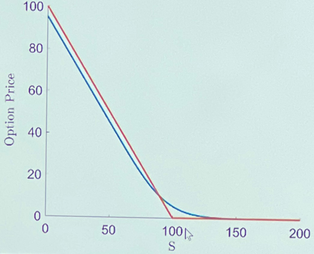 Typical graph of put option value against intrinsic value