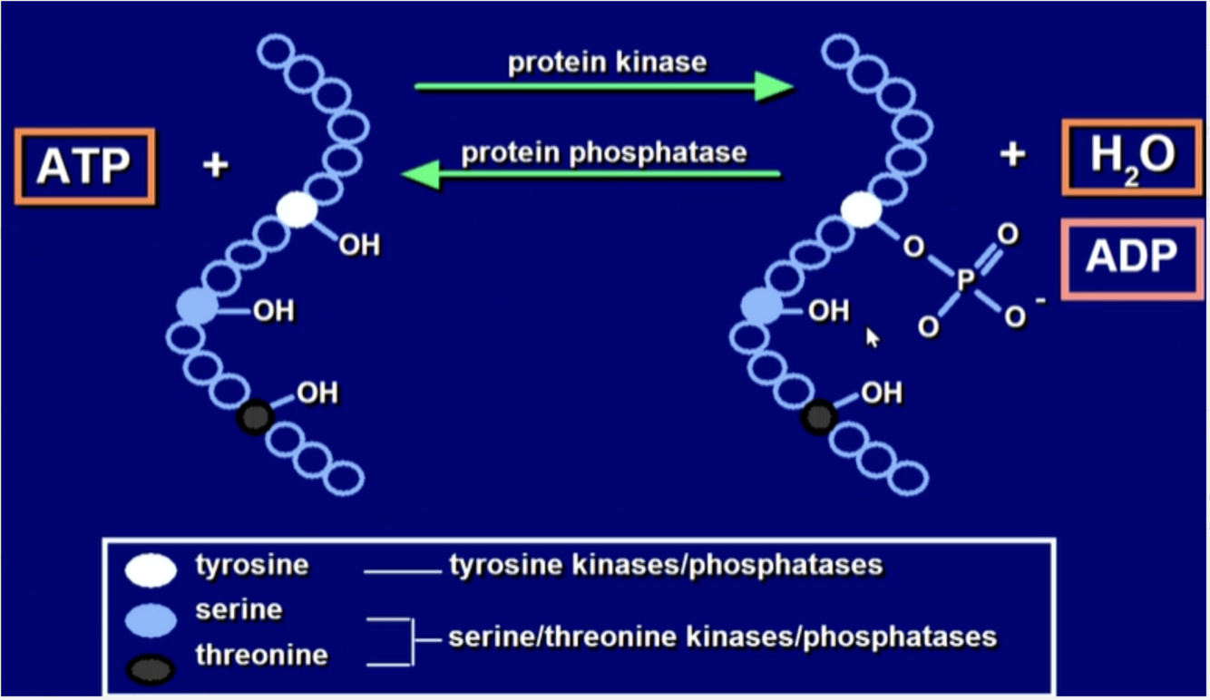 - kan aan tyrosine, maar ook aan serine en threonine (door serine-threonine kinases)