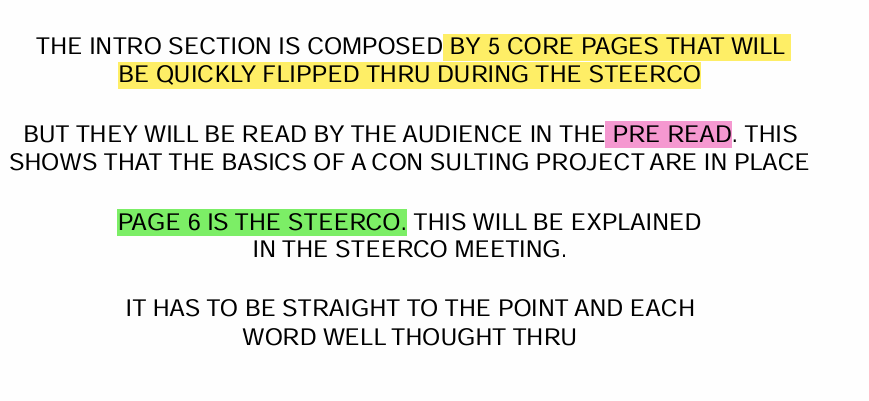 how is it composed the introduction of a steerco deck? when will the reader read it? what is page 6 about?