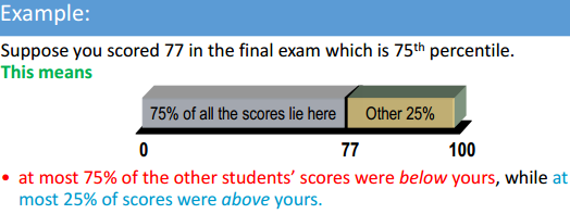 The pth percentile of a set of observation is the value for which at most p percent of the observations are less than that value and at most (100-p)% are greater than that value.