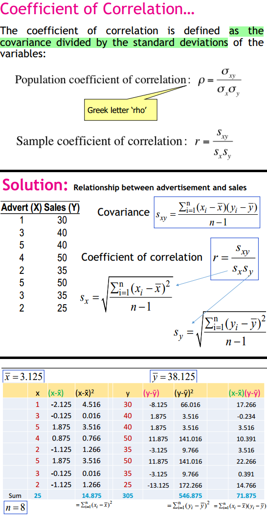2/ Coefficient of Correlation: Describes how strong is the linear relationship between two variables?