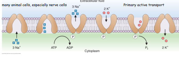 Na+ are released to the outsie, and two external K+ bind adn trigger hydrolysis of the bound phosphate group and a reture to teh original conforation, accompanied by release of K + inside the cell.