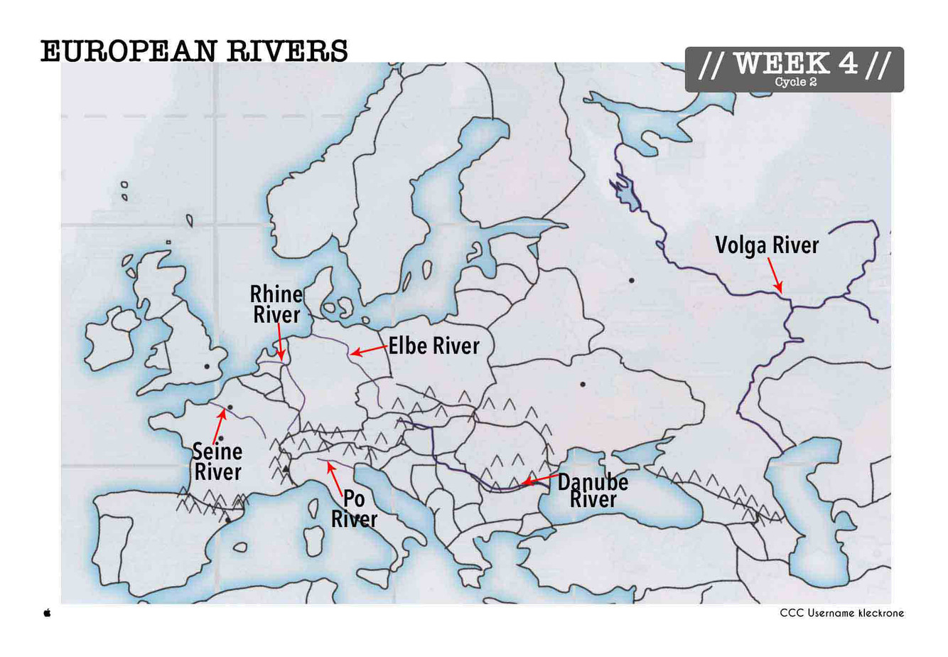 Seine, Rhine, Elbe, Po, Danube, Volga