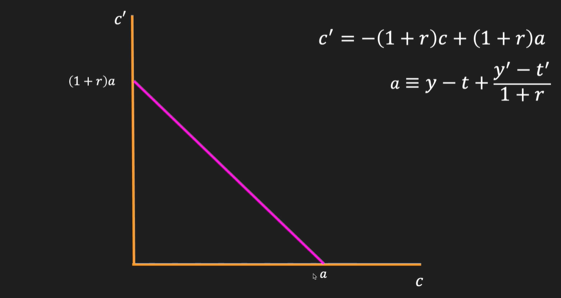 If we write the intertemporal budget constraint in a another way C’ = -(1+r)C + (1+r)a