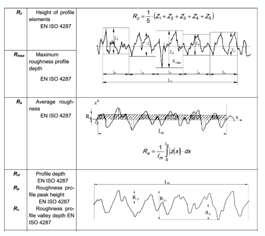 Rz = distance between highest peak and lowest peak