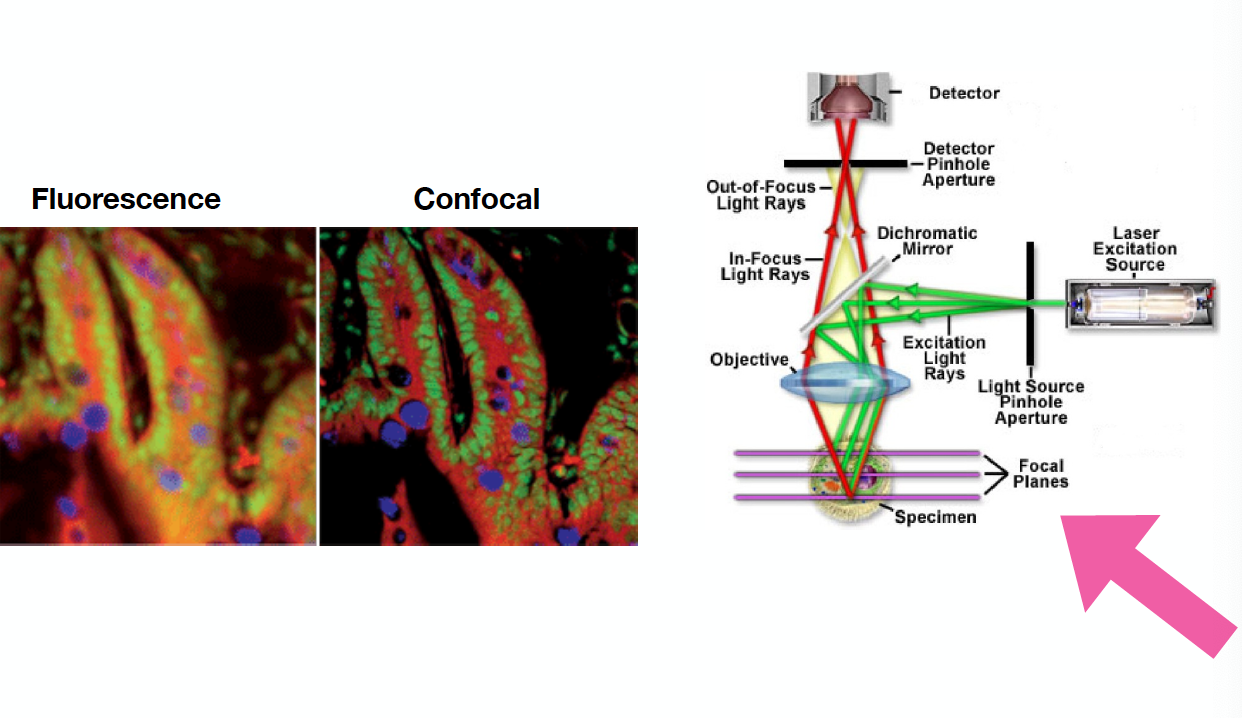 What are the two benefits of confocal microscope?