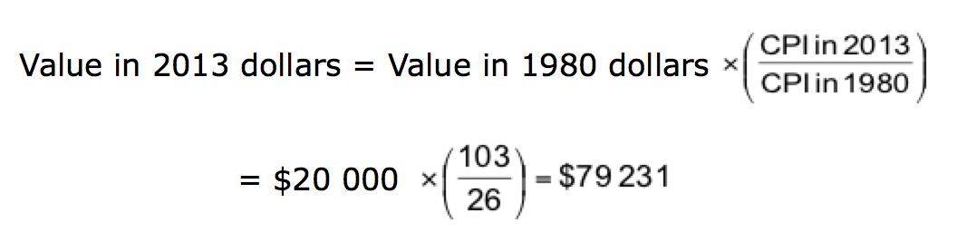 The 2013 purchasing power equivalent of a $20 000 salary in 1980 can be found