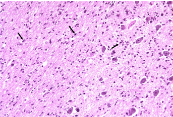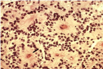 Micro highly infiltrative astrocytic cells (see pic - small dark cells diffusely), no mitotic activity, no vascular proliferation/necrosis
