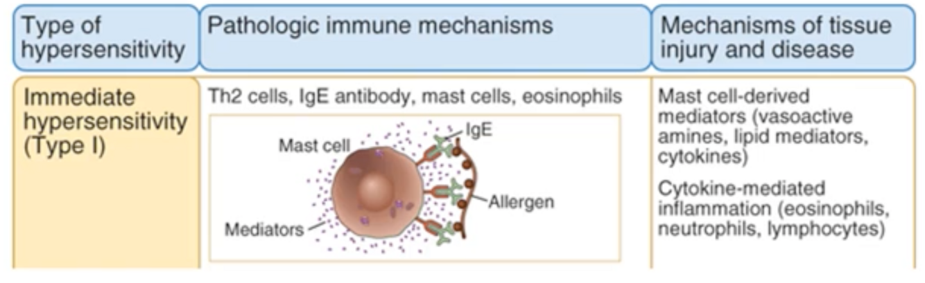 Describe Immediate Hypersensitivity (Type 1)