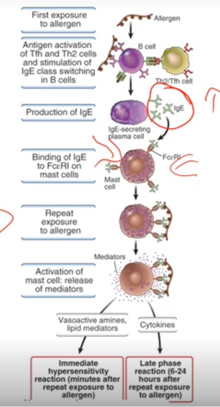 1. Upon repeat exposure, Vasoactive amines and leukotrienes get released causing immediate reaction