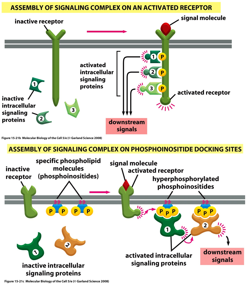 Enzyme-linked receptors = PI3 kinease, PLC-g, IP3, Ca2+, SRc, Jak-STATs, NF-kB