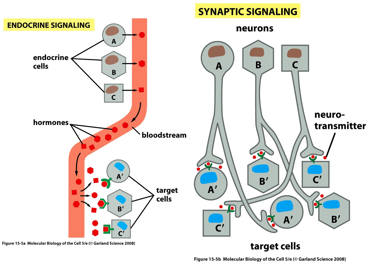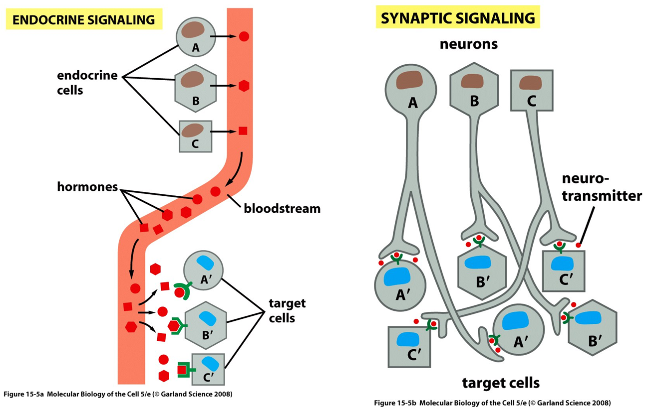 Endocrine vs. Synaptic signalling affinity / length