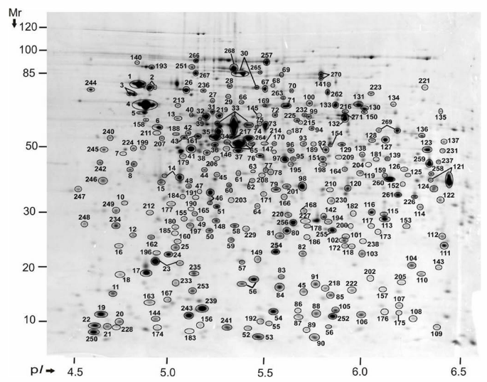 **1. **2D gel electrophoresis