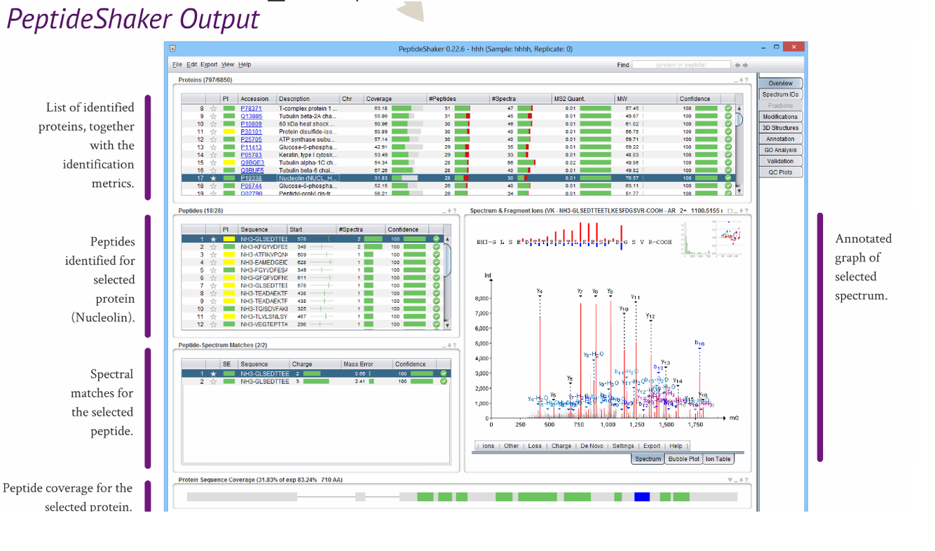 Finally, we get our list of identified proteins. Quantitation is also possible – but too complex to cover today!
