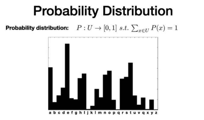 It is a function that maps events in some universe U to the range 0 to 1 inclusive. The sum of all probabilities is 1.