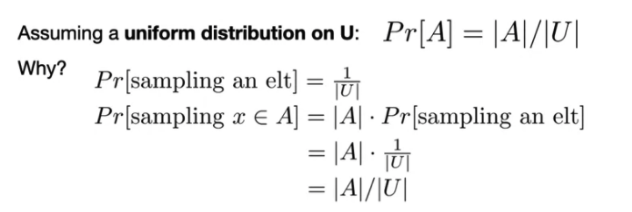 Because we basically take the number of elements we have, A, multiply it by tyhe probability of an event A happening, which is 1/|U|. and we get A/|U|.