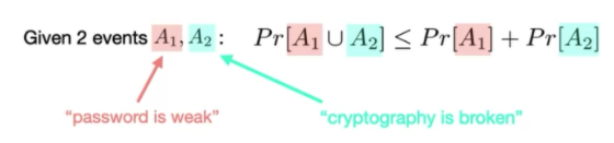 So, we give an upper bound by adding the two probabilities together, and when we can get the upper bound down to a reasonable, small probability in our system, then we know that whatever actual complex attempt someone has is bounded by a good number.