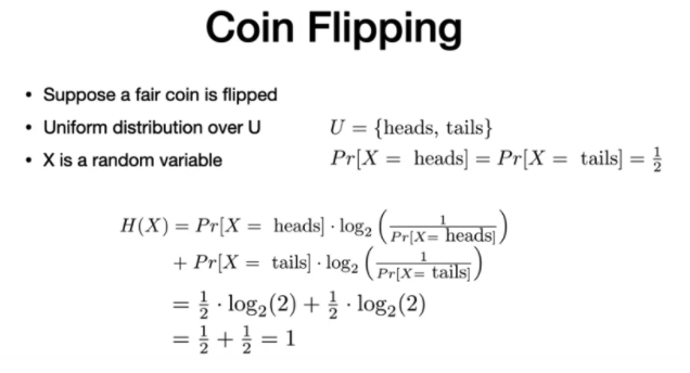 Assume that a fair coin is flipped and has a uniform distribution over the universe of heads and tails.