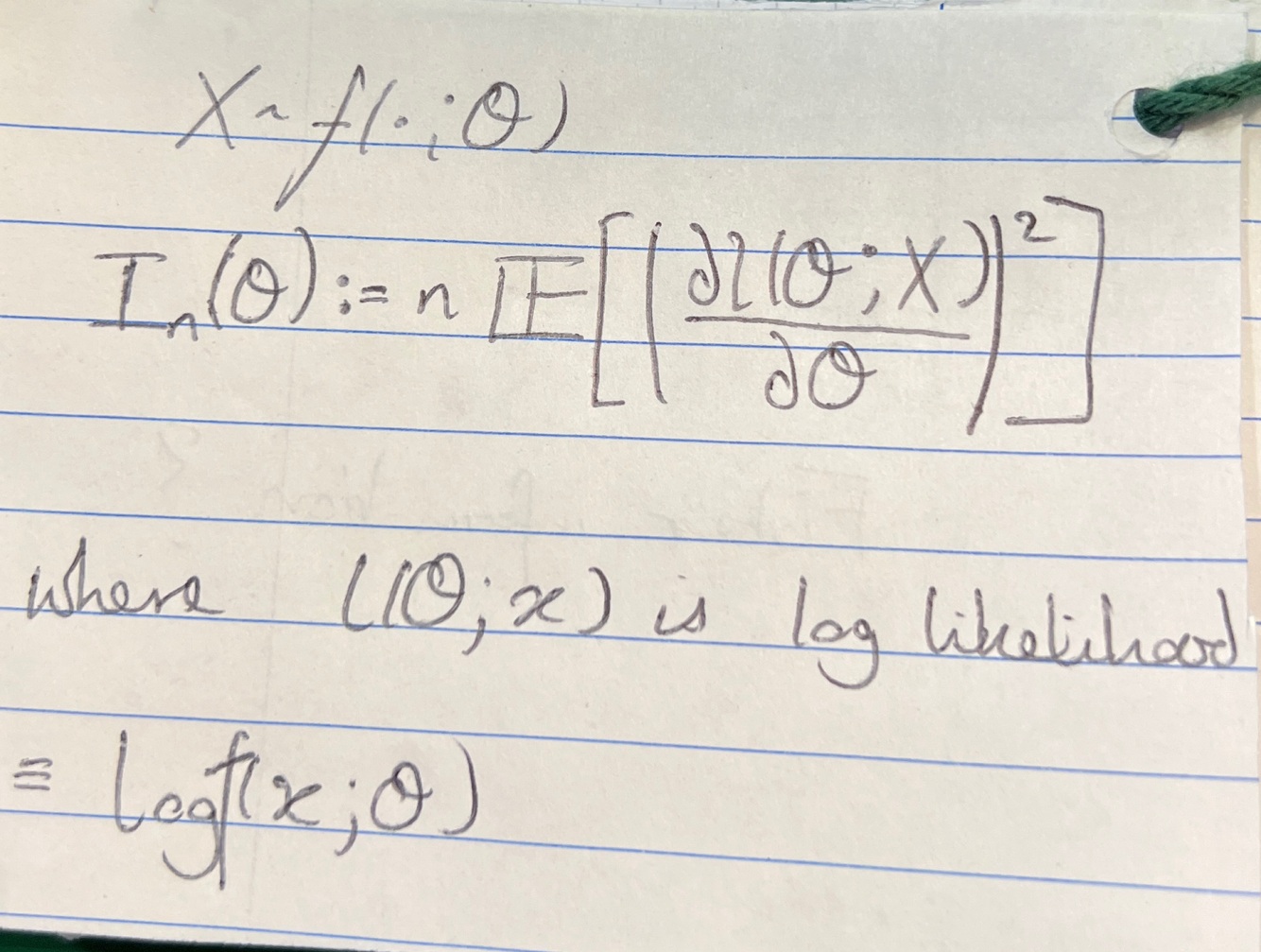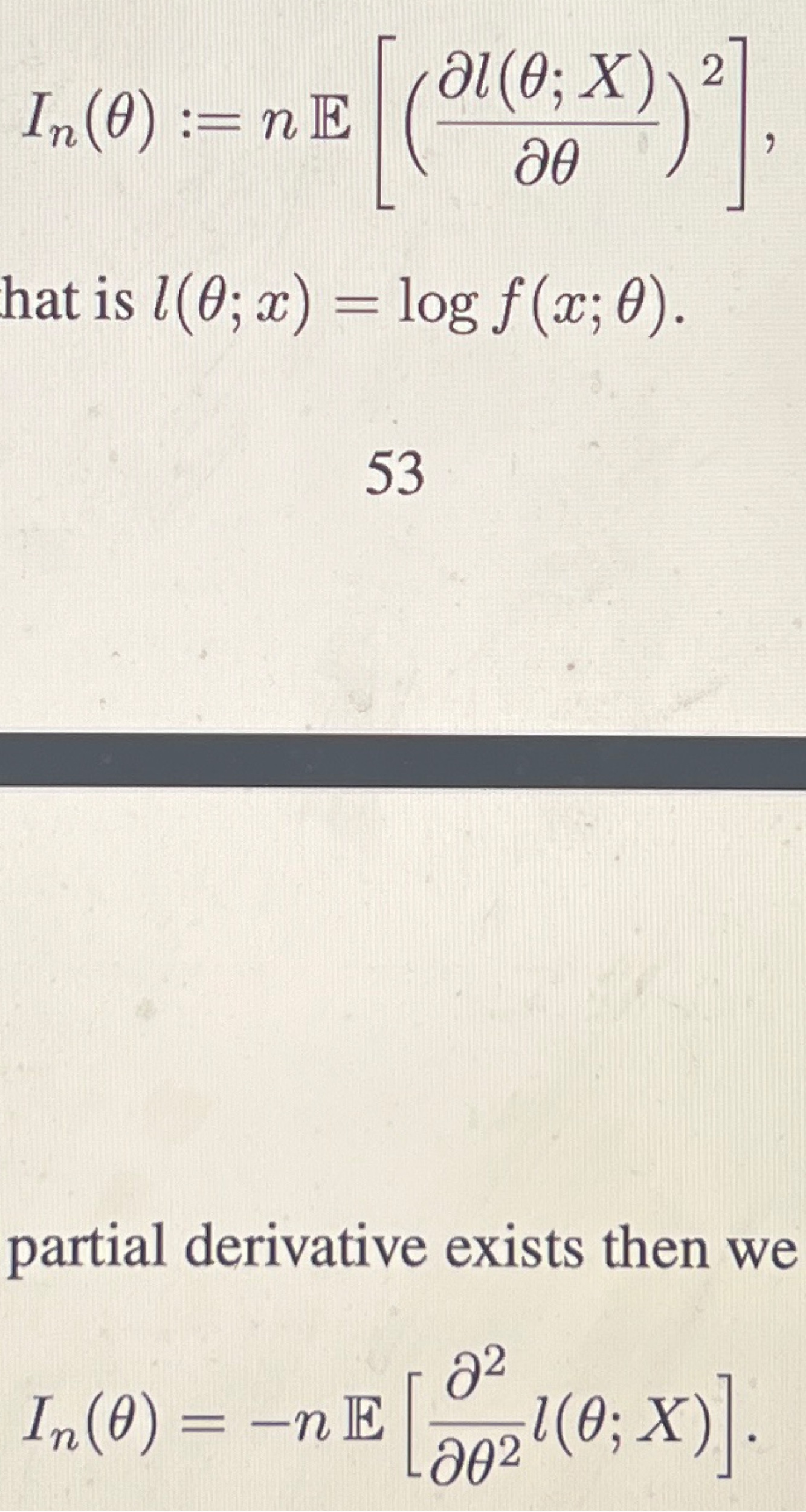 If 2nd deriv exists, take expectation from log likelihood function. Otherwise, expectation of square of deriv of log likelihood function