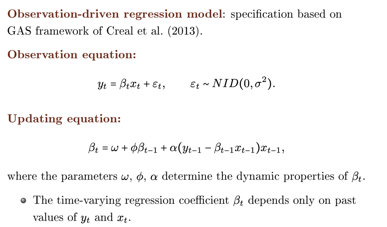 What are the observation and transition equation of the parameter-driven dynamic regression?