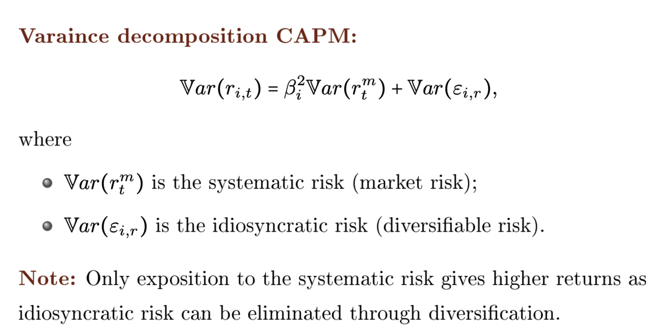 How can the variance of the CAPM model be decomposed? What does this imply?