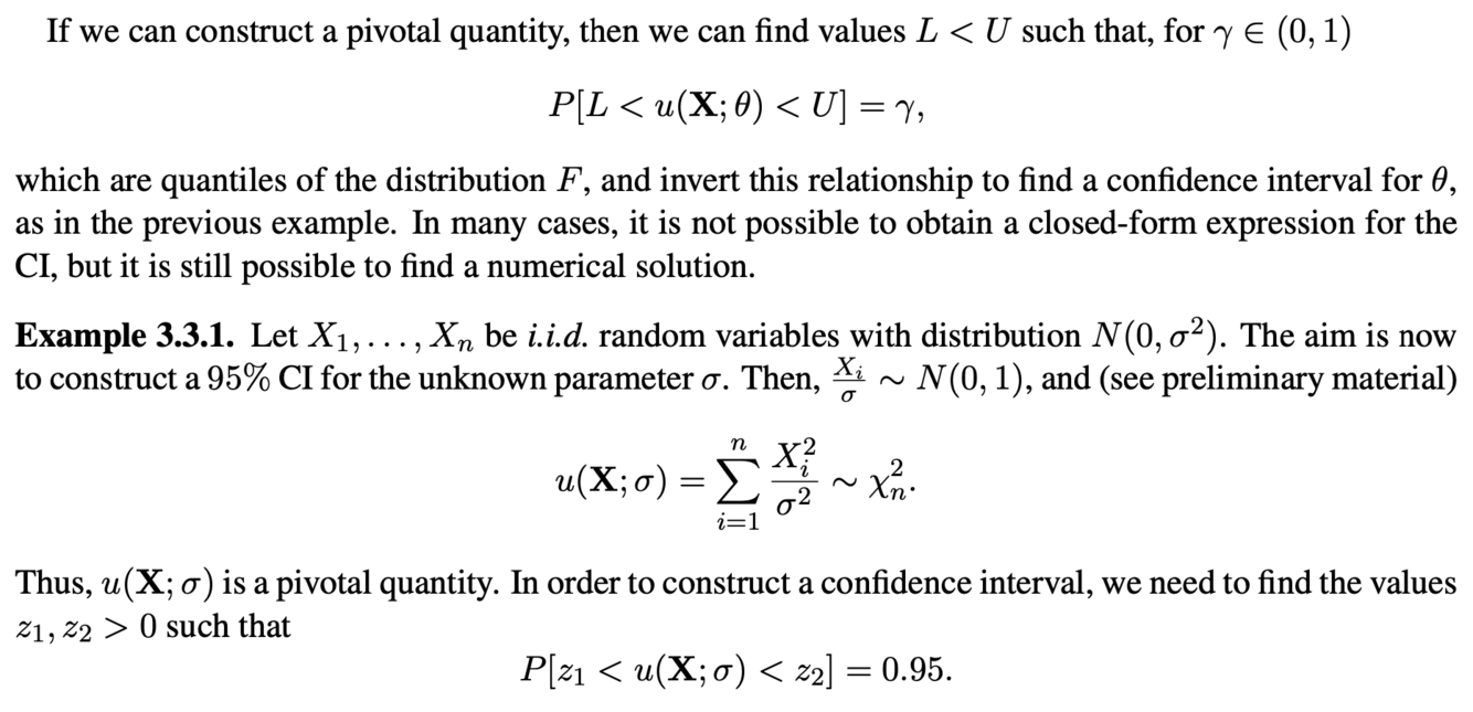 A pivotal quantity in general is a function u(X; θ) of the observations X and the parameter θ that has a completely specified distribution F (·), that is, a distribution that does not involve any unknown parameters.