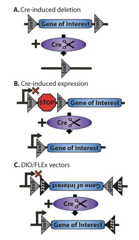 Allows for the knock-out of particular genes. We surround the gene of interest with LoxP, the two LoxP combine in the presence of Cre-recombinase and ejects that gene.