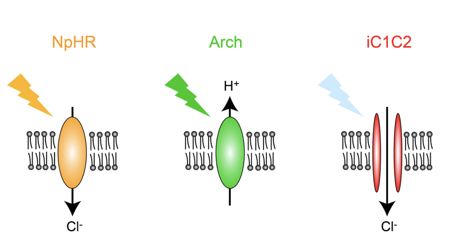What optogenetic tools exist for inhibiting a targeted population of cells?