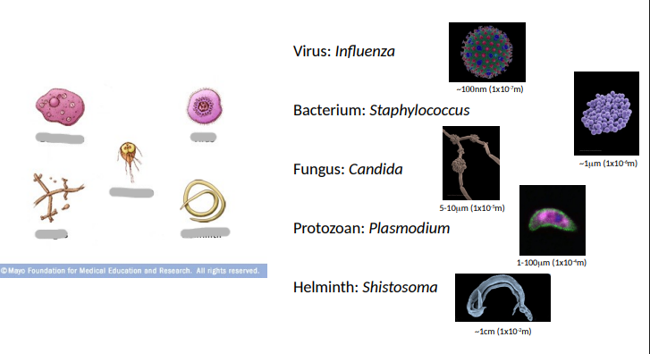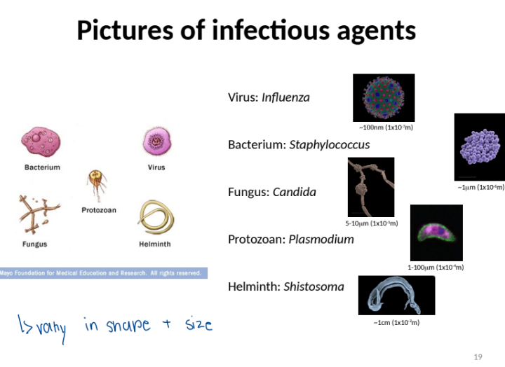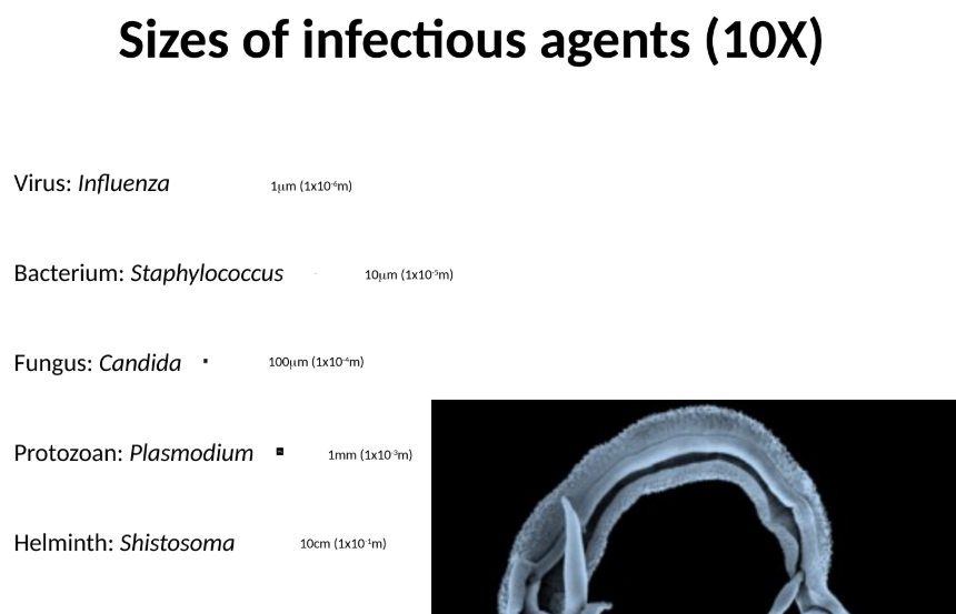 Sizes of infectious agents (10X)