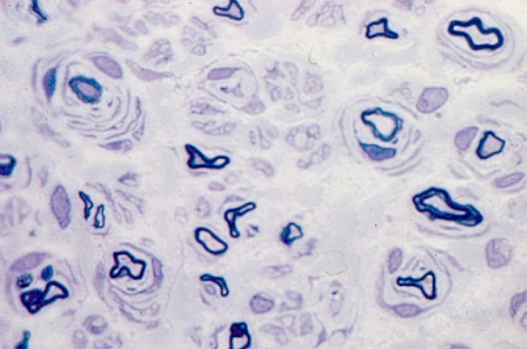 What are the clinical and pathological findings with demyelinating? neuropathy