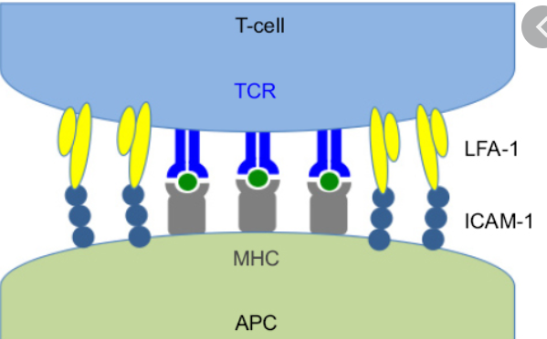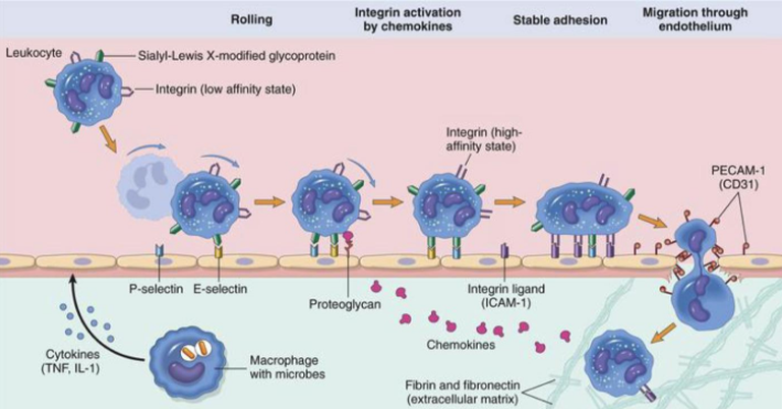 It interacts with neutrophils or T cells on the surface of endothelium (in extravasation) or APC
