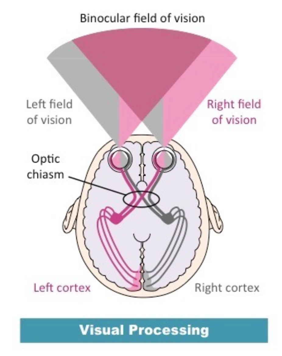 Describe contralateral control for visual processing