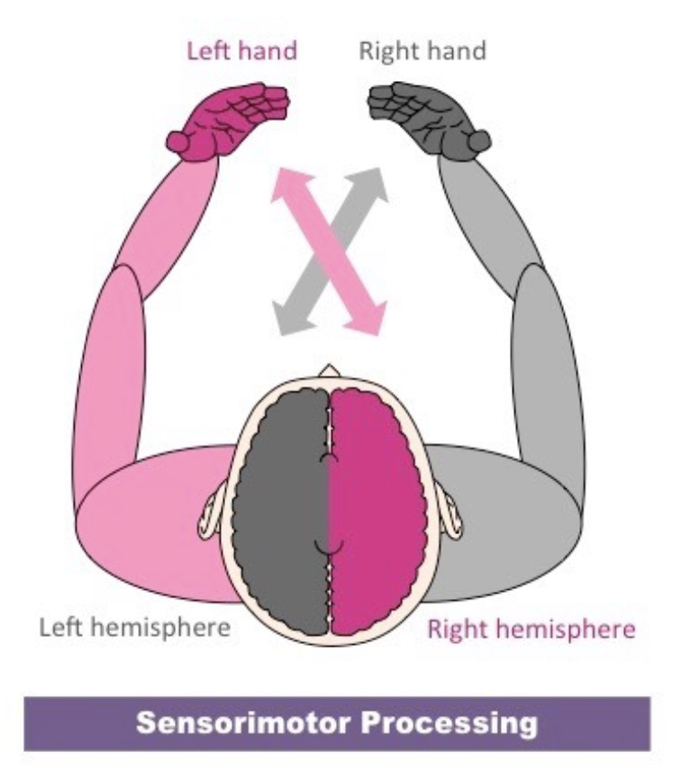 Describe contralateral control for sensorimotor processing