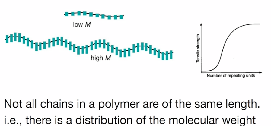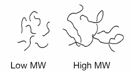 less mobility of the chains (more entangled) –> higher strength –> greater thermal stability