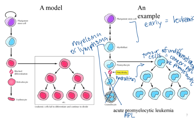 -Sooner/earlier than myeloma or lymphoma which are caused by mutation later in differentiation stages