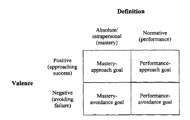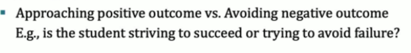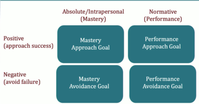* Performance-avoidance goals: same negative valence (avoidance) but use normative standards (avoiding doing worse than others).