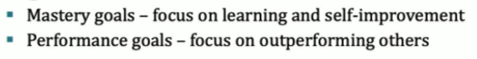* Mastery-approach goals: same definition (task/self-focused) but focus on achieving success rather than avoiding failure.