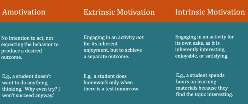 what are the three possible motivational outcomes according to the SDT? Give an example of each.