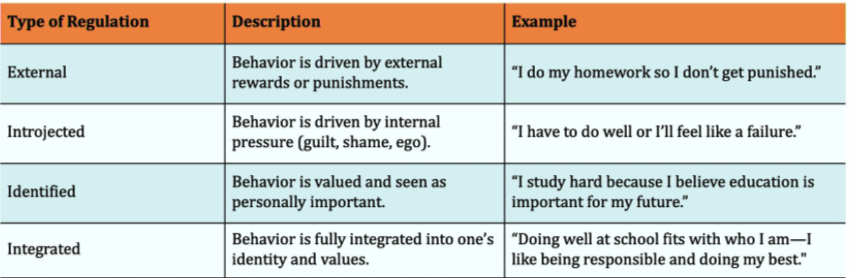 SDT posits that students thrive when three innate psychological needs are met: autonomy, competence, and relatedness. Supportive teaching fosters these through autonomy support, structure, and involvement, which promote autonomous motivation and high-quality learning.
