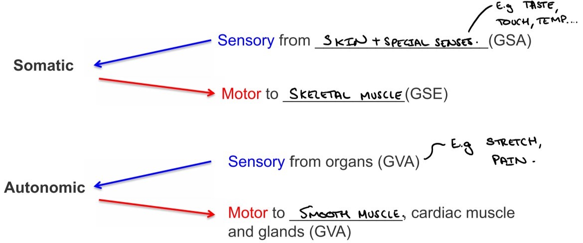 What sort of information do the peripheral nerves send? Explain both of the general pathways of both the Somatic and Autonomic NS’s.