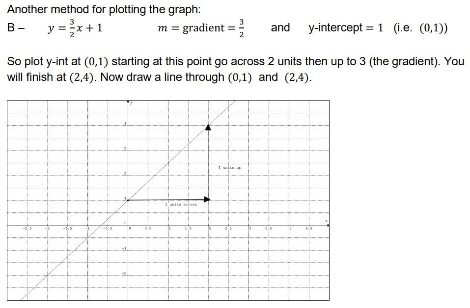 y=(3/2)x+1 3/2 = gradient/slope = m 1 = y-int = c