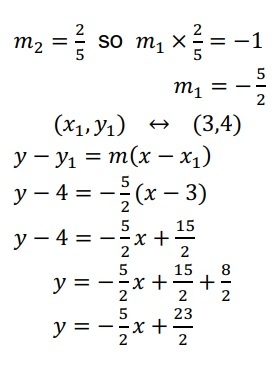 Find equation of line through (3,4) that is perpendicular to the line