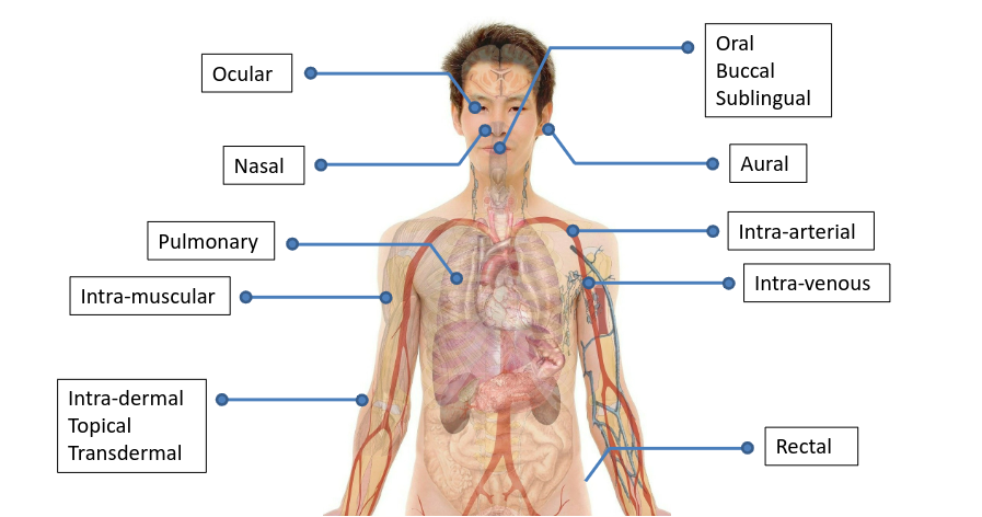 There are numerous route via which drugs can be administered to the body