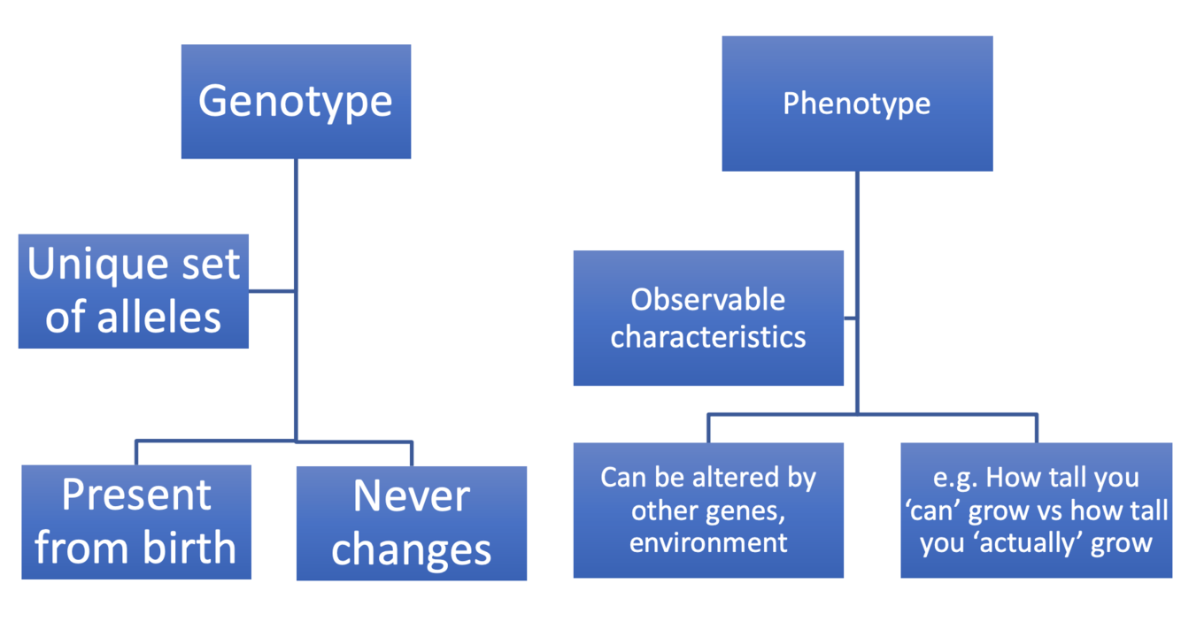What is the difference between genotype and phenotype?