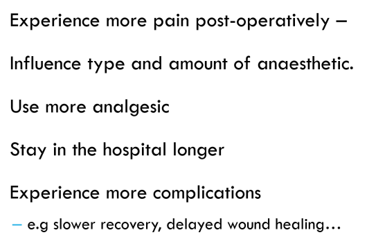 What are some post-operative outcomes for individual who experience high anxiety pre-operatively?