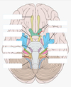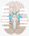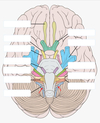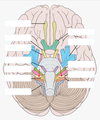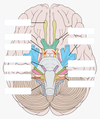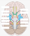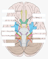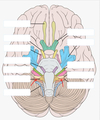 afferent information into the dorsal ganglion root, through the dorsal horn, into the ventral horn, to the ventral root, out as efferent information