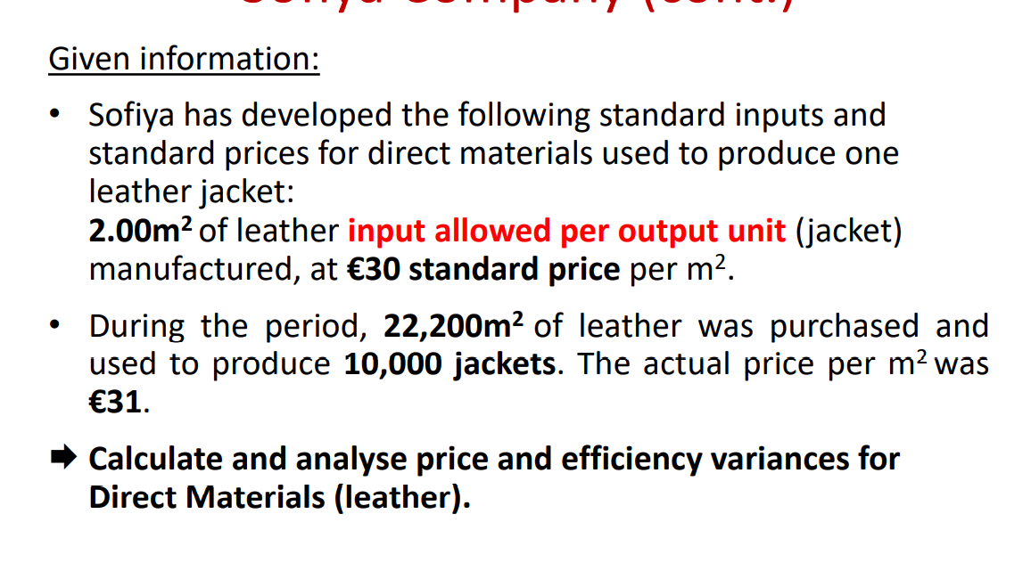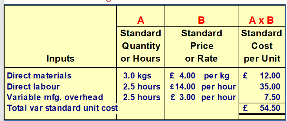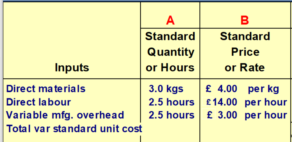 Lets say we have a standard cost card for one unit of product, with inputs of DM, DL AND VOH