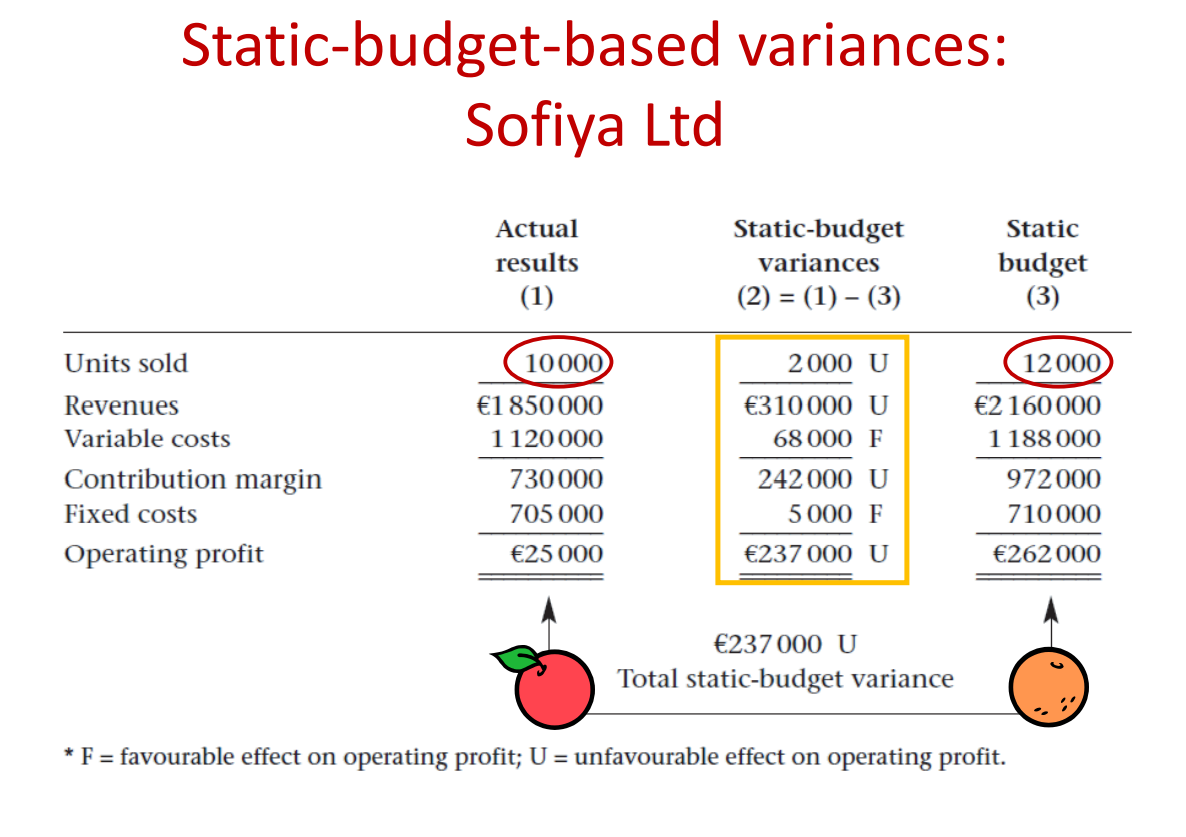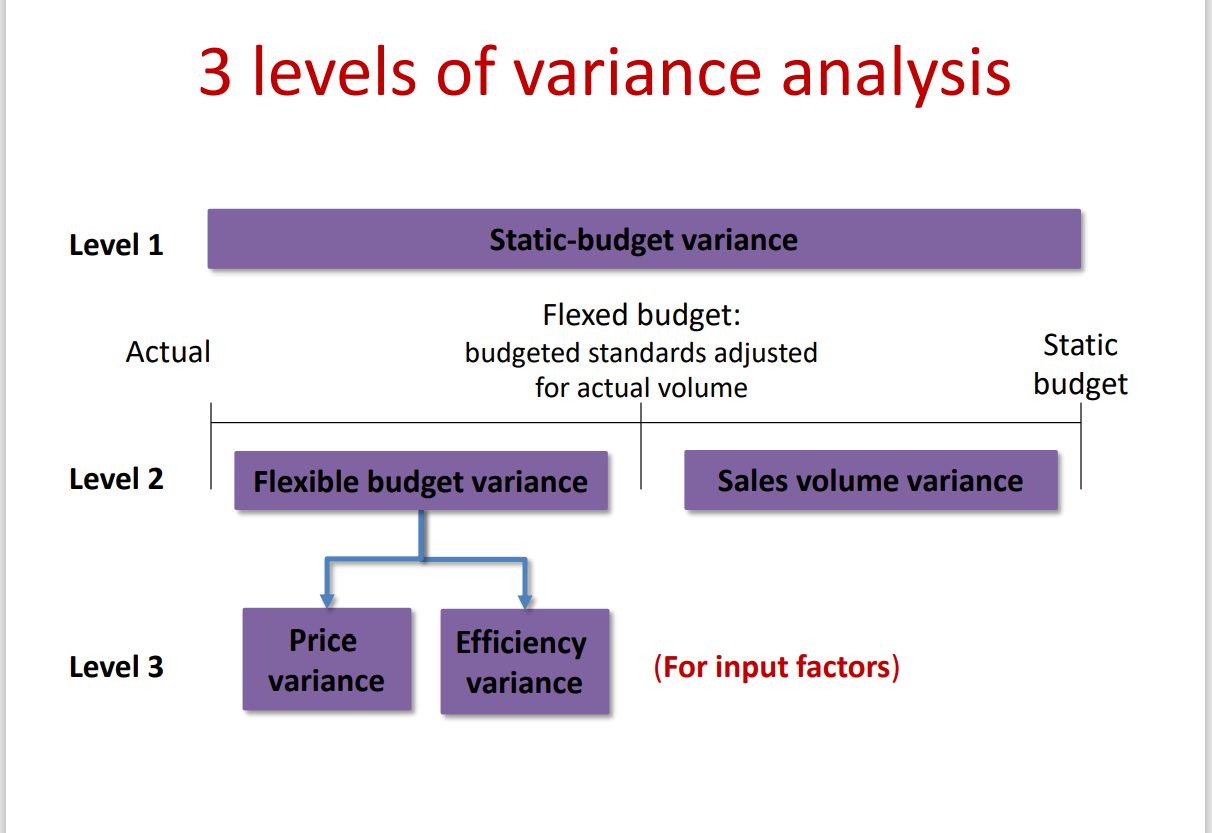 In static budget based variance analysis, variances caused by changes in output cannot be separated from variances caused by changes in price/cost.